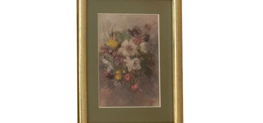 KOBIETA Z PAWIEM (niedostępny) autor: Elżbieta Polańska technika: akwarela wymiar obrazu: 12 cm x 17 cm wymiar z ramą: 22 cm x 27 cm